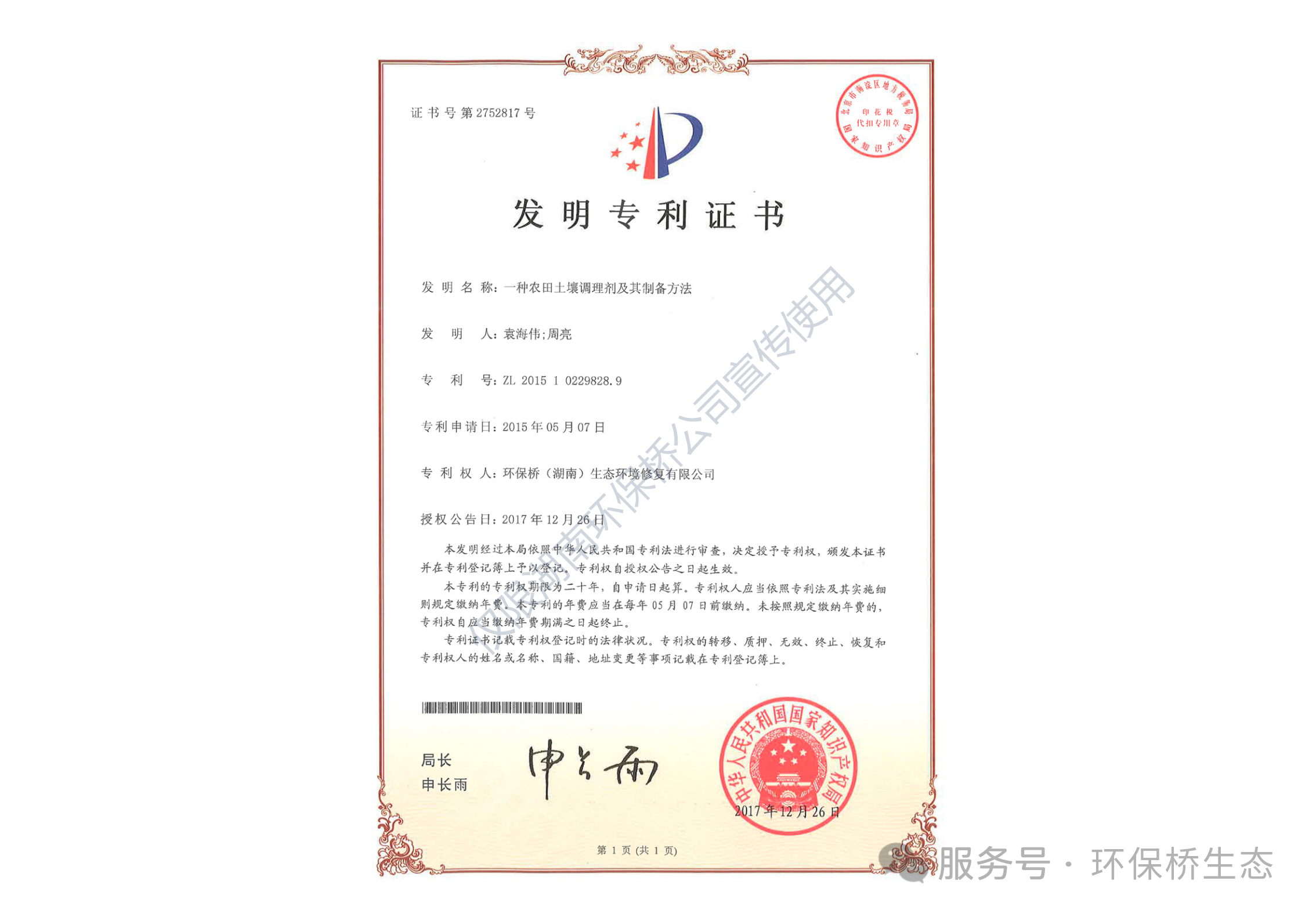 楚戈®土壤调理剂(经典降镉型)于2017年拿到肥料登记证【农肥(2018)准字12580号】并投放市场,已在全国近20个省份得到应用推广。该产品是专门为解决“镉大米”问题而研制,是全国首个获得国家专利密集型产品备案的土壤调理剂。